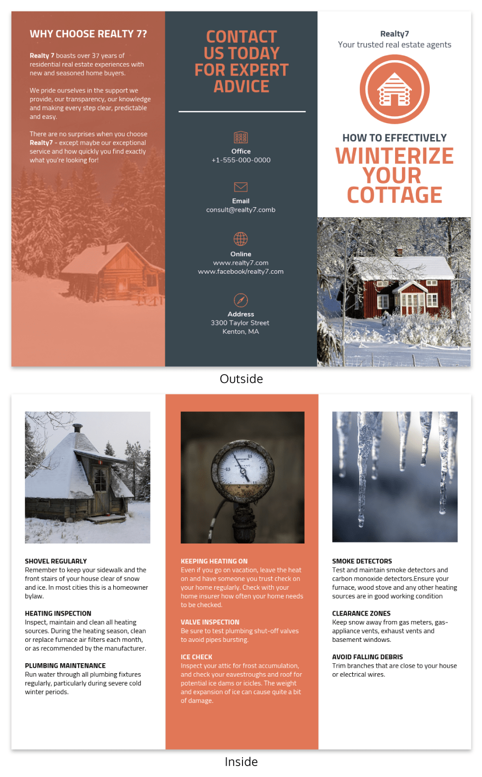 Create a simple real estate tips brochure and more with this Orange Real Estate Home Informational Tri Fold Brochure Template. The brochure is easy to customize and features a professional color palette, photos, and bold text. Get your real estate brochure noticed by choosing a professional color palette. You can utilize monochromatic, analogous, or gradient colors depending on the style you want. Pick a color palette and apply it to the text, background, icons, or layers! Make a visually stunning brochure by integrating realistic photos. This Orange Real Estate Home Informational Tri Fold Brochure Template uses photos to explain the topic and they vary in size. Choose from thousands of high-quality stock photos from the Venngage gallery and add them as background images or to represent items or even products! To draw attention to specific content, consider using bold text. You can utilize bold text to emphasize titles, headings, and key details within the content. Not quite the template you're looking for? Browse Venngage for more unique tri-fold brochure templates!