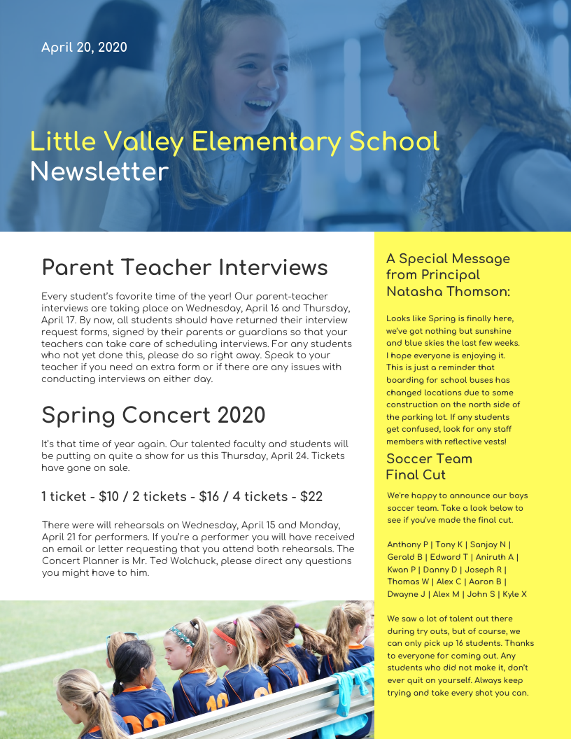 Simple Elementary School Newsletter Template